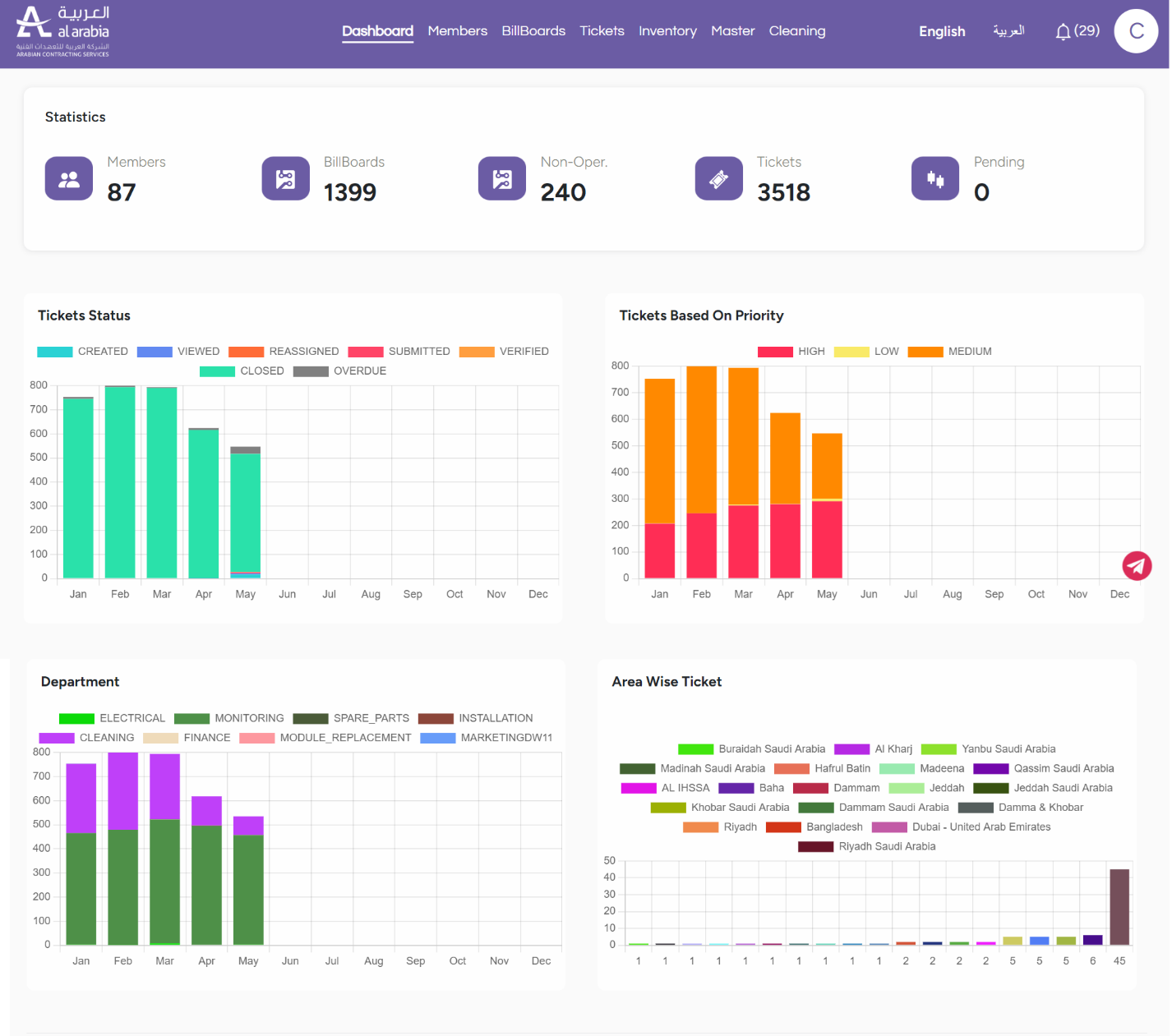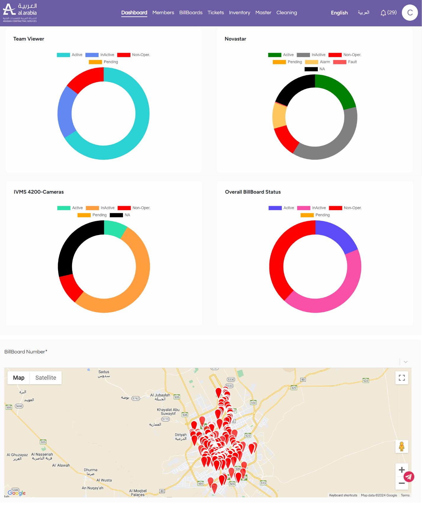 A Billboard Management System is a comprehensive software platform designed to streamline the processes involved in managing advertising billboards. This system helps billboard operations team to track the billboard technical issues and cleaning issues, control inventory levels and improve overall operational efficiency by communications via in-built chat service.